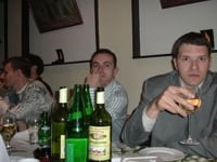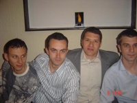 ....elem....sto se tice slika koje traze Mujke i tata Edo...pa nemam ih ljudi....jeb***, ko nam je kriv kad se nismo slikali...ja sam imao i aparat, ali se malo popilo, i nisam napravio dva shota...kada sam sutradan pogledao aparat, bile su dvije slike koje je Samir slikao, ali naravno i on onako pripit je slikao.....jako neuspjesno, moram priznati....Samire, ja vjerujem da je do aparata....;))Nino