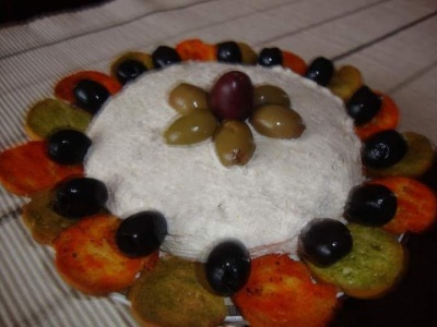 rožica je od bakalara na bijelo, bruscheta i maslina