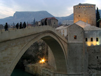 Jučer, tj. prekjučer (već je jutro) otišao sam u Mostar autobusom u 14:10. Čim sam stigao, krenuo sam prema novom Starom mostu jer je već počeo padati mrak. Tamo sam sreo čovjeka koga pamtim iz djetinjstva. To je Aco biciklist, mostarska, svjetska legenda. Viđao sam ga kraj robne kuće (tadašnji "Razvitak") u Metkoviću, gdje je obično pravio pauzu na putu od Mostara prema moru ili obratno. Pričao mi je o milijunima kilometara koje je prešao na dva točka, kako je biciklom šlepao Fiću... :) Kaže da ima dvije kćeri u Americi ali ne kontaktiraju. Živi od onoga što mu ljudi daju... Nije se mnogo promijenio u zadnjih dvadesetak godina, čini mi se. Još ima snage za maratone. Evo opet slučajnosti: na drugoj slici je još jedan bicikl(ist)...