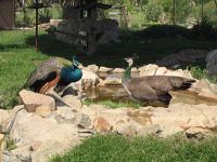 Iako su mi baterije bile pri kraju, uspio sam snimiti sve životinje osim rakuna i lisice, koji su se skrili u dubok hlad i nisam ih vidio. Kavezi su jako veliki. Životinje mogu trčati i osjećati se slobodno. Iznenadilo me da zajedno žive različite vrste. Samo su kavezi s mačkama i psima odvojeni. Oni se također šeću i slobodni svud okolo. Upozorili su me da ponekad znaju biti opasni i napasti posjetitelje ali nije bilo problema. Stafordski terijer koji je šetao pored nas, nije pokazivao nikakvu zainteresiranost za naš posjet. Izgledao je jako star, a možda je samo bio pospan. Pasja vrućina...Vidio sam da se grade novi kavezi. Možda za medvjeda ili vuka... Još im nedostaje jezerce s ribama. |
