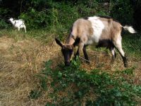 Oko dva popodne stigli smo do našeg odredišta, sela Trebižat u Hercegovini. Prije samog ulaska u Čapljinu napravili smo pauzu, parkirali auto u hlad i opet pogledali koze. Sve je bilo u redu, samo su bile jako prljave. Tata i ja popili smo po lozu...Koze su bile namijenjene Živkovom rođaku. Živko je par tjedana ranije za sebe kupio kozu i jedno jare, kod istog čovjeka u Zenici. Bio je jako zadovoljan. Kupio ih je zbog mlijeka. Njegov sin kaže da mu je dovoljna koza, da mu kozlić nije potreban i da će ga ubiti i pojesti. Užas. Neću mu to dozvoliti. Pokušat ću ga nagovoriti da mi ga proda, mada ne znam kud bih s njim, nemam zemlje. Moj tata se također užasava toga. Kaže da nikad ne bi mogao ubiti životinju. Moj djed također je bio takav. Skenirao sam njegovu fotografiju koju mi je dala tetka. Vjerujem da se dio mojih predaka hranio vegetarijanski. Meni je od djetinjstva odvratna ideja uzgajanja životinja za prehranu. Meso mi se gadi. Mliječne proizvode volim, to ne nanosi toliku bol niti oduzima život životinji. Ali jedenje mesa mi je odvratno. Ne postoji način da se životinja pojede, osim da je netko ubije. A Biblija kaže "Ne ubij!", ne kaže "Ne ubij čovjeka", nego općenito - ne oduzmi život. A ljudi danas, u ovom suvremenom dobu, ubijaju ljude. Nisam gledao film koji se prikazivao na TV, o jednom od zločina počinjenih u prošlom ratu protiv civilnog stanovništva. Nisam htio gledati. Sve znam. Sve sam to proživio iako nisam vidio nego samo čuo o tome što se događalo. Ljudi koji su sposobni ubiti životinju, mogu postati sposobni i za ubojstvo čovjeka. Koza sa slike daje skoro litar mlijeka dnevno, a kozlić je prestao dojiti. Dakle, normalno je da čovjek pomuze kozu i koristi to mlijeko za sebe, jer brine o kozi. Međutim, dok su jarići mali, ne bi trebao uzimati njeno mlijeko. Tako je isto s kravama i ovcama. |