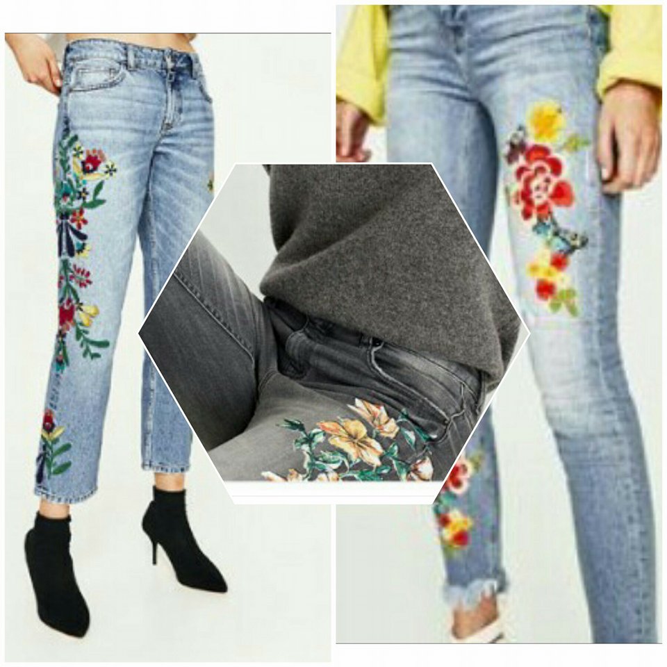 I bok svimaaa. Danas sam odlučila ovaj blog učiniti malo zanimljivijim. Odlučila sam malo pisati o modi i trendovima trenutno. Kao što možete vidjeti na fotografiji iznad trenutno su u modi jako popularni komadi odjeće koji na sebi imaju izvezenu cvjetnu šaru odnosno cvijeće. Na fotografiji možete vidjeti samo hlače ali postoje i kožne jakne,traper jakne, majce....Meni se ovaj trend jako sviđa