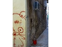 Pizza sa štanda, u jednoj paralelnoj ulici sa Kalelargom je već, provjereno od ranije, bila senzacionalno dobra. U blizini tog mjesta snimili smo i fotografiju klima uređaja sa kantom za vodu.