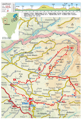 Za ovu turu kao inspiracija opet je poslužio predobar portal Istra bike. Privukla me činjenica što osim Grožnjana nisam nikad bila niti u jednom od mjesta kroz koje se putem prolazi. Inače, veliki sam ljubitelj tih malih i relativno nepoznatih mjesta tako da sam jedva čekala da se upoznam s njima.