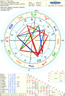 Povodom smrti velike glazbenice Tine Turner, pravim imenom Anna Mae Bullock, prikazan je film What's Love Got to Do with It (1993) https://www.imdb.com/title/tt0108551/. Kao u svakom biografskom filmu neke stvari su preskočene, a neke su prikazane jednostrano zato se moramo informirati iz više izvora. Kod analize moramo zanemariti osobne simpatije i uvjerenja i držati se samo činjenica. U ovoj analizi osvrnuti ću se samo na neke dijelove njene bogate biografije i gledati ću samo tranzite. Tinin horoskop je školski primjer djelovanja Saturnovih tranzita. Biografija Tine Turner je zanimljiva zato jer nam može dati uvida kako ih horoskopa prepoznati da netko ima glazbeni talent, kako prepoznati agresivnog partnera, kako vidjeti da će osoba promijeniti vjeru i još mnogo toga. Pri tome, nezaobilazna je analiza horoskopa njenog bivšeg bračnog partnera Ikea Turnera, bez kojeg Tine kakvu danas znamo ne bi bilo. Uz to, ne smijemo zanemariti horoskop Davida Bowiea koji je pomogao njenom povratku na svjetsku scenu 80-tih godina prošlog stoljeća. A treba spomenuti i njenog drugog supruga Erwina Bacha koji joj je darovao bubreg i produžio život. Anna Mae Bullock (ili Martha Nell Bulock- prema Ikeovom svjedočenju) rođena je 26.11.1939. u 22:10 u Brownsville, Tennesee, kao jedna od tri sestre. Od najranijeg doba radila je u polju i pjevala u crkvi. Kada je imala 11 godina (Jupiterov povratak) majka napušta obitelj, a otac odlazi kada je imala 14 (polovica Saturnovog povratka). Odgojila ju je baka, a nakon bakine smrti (tranzitni Saturn prelazi natalno Sunce) dolazi majci u St.Louis gdje završava školu za medicinske sestre. Tamo 1957. upoznaje Ikea Turnera, ostaje trudna sa njegovim saksofonistom i rađa sina Craiga 29.8.1958. (tranzitni Saturn na natalnoj Veneri u 5.) koji je 3.7.2018. izvršio samoubojstvo. Zatim, ostaje trudna sa Ikeom Tunerom i rađa sina Ronniea 27.10.1960. (tranzitni Jupiter na natalnoj Veneri) koji umire 8.12.2022. od raka. Iste godine joj Ike mijenja ime u Tina. Brak sa Ikeom sklopljen je 1962 u Tijuani, Mexico, iako je tada on još bio u braku sa sa svojom petom ženom Alice Bell od koje se službeno rastao 1974. Karijera je cvjetala, ali bračni odnosi su bili puni nasilja pa je Tina pokušala samoubojstvo 1968. (Saturnov povratak). Tina je rođena kao baptistica a sa budizmom se susrela 1973. na koji prelazi 1974. (tranzitni Neptun konj. natalni Merkur, opozicija Mjesec) kada izdaje svoj prvi samostalni album kojeg je producirao Ike. Iako je Ike bio teški ovisnik o drogama, Tina se nikada nije opijala ili drogirala. Nasilni brak je konačno razvrgnut 29.3.1978. kada je tranzitni Jupiter bio u opoziciji sa Tininom Venerom (vladarica desete kuće). Tina ima natalno Mars u sedmoj kući što daje nasilnog partnera, muža sportaša, vojnika ili sa Suncem u znaku ovna ili škorpiona. Taj Mars je dio konfiguracije T-kvadrat (Mjesec,Mars,Sunce) kojeg nadopunjava Ikeov Mjesec i stvara konfiguraciju veliki križ. Kakav god da je bio Ike je Tini rasteretio napetost natalne konfiguracije. Nezgodan je Ikeov Mars na Tininom Suncu, ali i Tinin Mars je u kvadratu sa Ikeovim Mjesecom. Ike i Tina oboje imaju Mjesec u kvadrat sa Marsom. Isti aspekti su jedan od pokazatelja jake veze. Za brak također moraju postojati aspekti između Sunca (Ikeovo Sunce na njenom IC) i Mjeseca (Mjesečevi u kvadratu). Ikeov mjesečev čvor je u konjunkciji sa Tininim Jupiterom (vladar Sunca). Do 1983. Tina je, prema svojim riječima, proživjela vrlo teških šest godina. Morala se sama brinuti o četvoro djece i skrivati se od Ikea. Radila je kao čistačica i nastupala po noćnim klubovima. 1976. Saturn ulazi u znak lava i počinje se približavati Tininom ascendentu, tu se radi o završetku jednog ciklusa i početku novoga kada se sve iza nas ruši, a novo još nije izgrađeno. Saturnov prolazak kroz 12.kuću se smatra najtežim dijelom Saturnovog ciklusa od 28 godina. Ovo nije Saturnov povratak, kada se Saturn vraća na natalni položaj, nego prelazak Saturna preko Ascendenta. Ta životna faza koja može potrajati i duže vremena (dok Saturn prođe 12. i prvu kuću), ovisno koliko dugo se Saturn zadržava u kućama, zna biti bolna i obično označava životni preokret. To je ponekad vezano sa zdravstvenim problemima i depresijom. 1983. Jupiter ulazi u strijelca i prelazi Tinino Sunce i Merkura što je rezultiralo izlaskom albuma Let's Stay Together i prekretnice kada opet postiže svjetsku slavu. 1985. upoznaje drugog muža Erwina Bacha (Jupiter u vodenjaku prolazi kroz sedmu kuću), 1986. seli u Europu i s njim sklapa brak 4.7.2013. 30.6.2000. se oprašta sa pozornicom (tranz. Saturn i Jupiter opozicija MC, Uran na Desc.), na koju se zakratko vraća 1.10.2008. Preživjela je moždani udar 2013 (tranz. Neptun konj. natalni Mars -glava) i rak crijeva 2016. (tranz. Saturn na natalnom Merkuru - crijeva) Transplantiran joj je bubreg 7.4.2017. (tranz. Saturn na Veneri - bubrezi, Uran na natalnom Saturnu - zdravlje), a umire 24.5.2023. u Švicarskoj (tranz. Saturn na natalnom Marsu vladaru 4.-grob, u kvadratu sa Suncem i Mjesecom, Uranov povratak, tranzitni Mars na natalnom Plutonu, suvladar 4. kuće). Tranzitna Venera je bila na 18° raka, tj. na vrhu 12.kuće-kraj. O glazbenom talentu govori bik na MC, kao i Merkur (vladar druge kuće) u konjunkciji sa Suncem. Venera (vladarica MC) iz pete kuće u T-kvadratu sa Jupiterom u osmoj i Neptunom u drugoj. Zarada uz korištenje seksipila od umjetnosti. Ike Turner, rođen 5.11.1931. u Clarksdale, Mississippi se ženio ukupno 14 puta, priznao je šestoro djece i imao brojne izvanbračne avanture. Treba reći da Ike nije uzimao drogu prije tridesete i izbacivao je iz svoje grupe svakoga tko je imao veze sa drogom. Isto tako, nakon 18 mjeseci provedenih u zatvoru, iz kojeg je izašao u rujnu 1991. deset godina nije uzimao drogu. Rođen je kao baptist, a 1994 se preobratio na judaizam (tranzitni Neptun u opoziciji sa natalnim Plutonom). Za njega nemamo