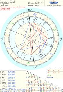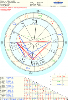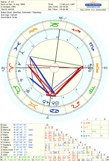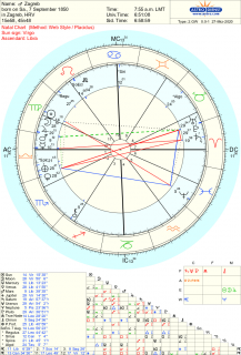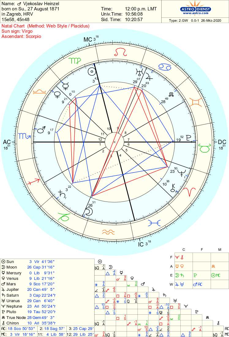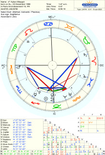Mnoge ljude astrologija zanima i znaju dosta o njoj, ali nisu astrolozi, a vrhunskih astrologa ima veoma malo. Kako prepoznati osobu koja bi mogla postati dobar astrolog? Planet astrologa je Saturn, bog vremena. Horoskop je onaj koji pokazuje sate, to je slika neba gledanog sa određene točke na zemlji u određeno vrijeme. Saturn je u tradicionalnoj astrologiji poznat kao veliki zlotvor, ali on daje divne darove. Saturn je planet znanstvenika. Astronomija se smatra najstarijom znanošću, ali astronomija i astrologija su bile jedno i predavale se kao jedan predmet na sveučilištima sve dok papa Siksto V 1586. bulom «Constitutio coeli et terrae» ne zabranjuje astrologiju. Saturn, kada se loše koristi može stvoriti zločinca, bešćutnu osobu, neosjetljivu na tuđe patnje. Mnogi nacisti su imali naglašen Saturn i znak jarca. Hitler je koristio usluge astrologa, a ideologija nacizma počiva na okultizmu. Svastika je simbol Sunca, nasuprot nje stoji petrokraka zvijezda, simbol čovjeka. Zanimljivo je da je Saturn planet Židova. Dobro položeni Saturn dati će smisao za red i organizaciju, radne navike, točnost, disciplinu, sposobnost za strpljiv i uporan rad, uz odricanja. Saturn osim što vlada jarcem, vlada i vodenjakom, a suvladar je Uran, bog neba i stvaranja. Uran je oplodio Geu (zemlju) i s njom imao djecu (Titane) koje se odrekao, da bi ga njegov sin Saturn svrgnuo sa vlasti i odrezao mu genitalije. Dakle, kod astrologa prvo tražimo Saturn (jarac) i Uran (vodenjak). Vrijeme i nebo. Jupiter, vrhovni bog, Saturnov sin, onaj koji je posložio zvijezde po nebu, pravedni sudac. Onaj koji daje proročke sposobnosti i vlada znakom strijelca i riba mora biti dobro položen. Ribama osim Jupitera vlada i Neptun, Jupiterov brat. Neptun također ima proročke sposobnosti i daje bogatu maštu i intuiciju. Jupiter i Neptun su slijedeće planete koje tražimo kod astrologa i zadužene su za obrazovanje i proročke sposobnosti. Zvijezde i vizije. Astrolog mora imati jake devetu (strijelac), desetu (jarac), 11. (vodenjak) i 12. (ribe) kuću. Mora imati puno vatre u horoskopu ili Mjesec u vatrenom znaku. Merkur (zrak) mora biti dobro položen (planet intelekta i komunikacije). Zrak pomaže da vatra dobro gori. Poželjno je da Uran i Merkur budu u dobrom aspektu sa Mjesecom. Da rezimiramo najvažniji objekti u horoskopu su vladar Ascendenta, Mjesec i Sunce. Najvažnije točke su Ascendent i Zenit. Prije spomenute planete i znakovi moraju biti uključeni u kombinaciju. Pogledajmo horoskop Alana Lea 7.8.1860., 5.49 h, Westminster, Engleska Saturn na Ascendentu inkonjukcija Neptun. Tri planete, između ostalih Jupiter, nalazi se u 12. kući (prirodni vladar ribe). Sunce u konjukciji sa Merkurom i Jupiterom. Pet planeta i Ascendent nalazi se u vatrenim znakovima. Uran u sekstilu sa Mjesecom (na vrhu 9. kuće u znaku ovna), Jupiterom, Suncem i Merkurom. Prevladava element vatre fiksne kvalitete – lav. Marion March 10.2.1923., 3.46 h, Nurnberg, Njemačka Ovdje vidimo da su Saturn i Venera zamijenili sjedišta, što znači da su prilično jaki, a Saturn osobito jer je na Zenitu i u trigonu sa Suncem u vodenjaku. Ascendent je strijelac, Jupiterov znak. Jupiter, vladar Asc. je u 11. kući. Mjesec je u strijelcu na Asc. u trigonu sa Neptunom. Tri planete i Ascendent su u vatri, od toga Mars u sjedištu na Nadiru. Dominira element vatre kardinalne kvalitete - ovan Noel Tyl, 31.12.1936., 15,57 h, Czwartek, West Chester (SAD) Saturn i Jupiter su zamijenili sjedišta. Saturn je u svojoj prirodnoj 10. kući, kojom vladaju ribe, a Jupiter je u konjukciji sa Suncem, trigonu sa Uranom i inkonjukciji sa Mjesecom (vladar Asc.) u trećoj. Saturn i Neptun su u opoziciji. Uran i Venera su zamijenili sjedišta. Uran (na vrhu 11. prirodno sjedište) je suvladar devete, a Venera je vladarica 11. kuće. Mjesec je u znaku lava. Dominira element zemlje, kardinalne kvalitete – jarac. Oznake: astrologija |