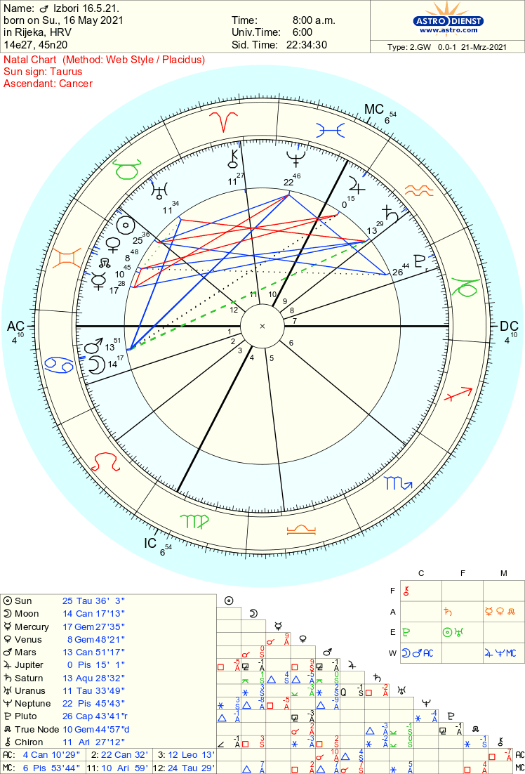 Zbog velikog broja kandidata pogledati ćemo samo par najvjerojatnijih. Za nijednog kandidata nemam točno vrijeme rođenja, pa će ova analiza biti dosta gruba. Po statistikama vodi Tomašević. Tomašević ima Mjesec u djevici, a Sunce u jarcu, što se odlično slaže sa Zagrebovim planetama u djevici. Njegov Mars je na Zagrebovom Marsu, a Pluton na Veneri. Tranzitni Pluton mu je prešao preko Sunca i daje mu veliku ambiciju i želju za moć. Međutim, Mjesec će na dan izbora biti u raku i mogao bi mu donijeti loše raspoloženje, a Mars u danima nakon izbora agresivne ispade. Davor Filipović ima istaknut znak blizanaca i škorpiona. Jupiter u djevici znači da bi mogao napraviti neke dobre stvari za Zagreb. Tranzitni Saturn na 12° vodenjaka će mu omesti planove. Joško Klisović ima šest planeta u djevici, a Mjesec u vagi. Njegov Saturn je na Saturnu grada Zagreba. Prije ili kasnije Klisović će biti jako važan za Zagreb. Možda će mu na ovim izborima smetati kvadrat tranzitnog Saturna na njegov natalni Mars, ali ima velike šanse za pobjedu. Tranzitni Pluton i tranzitno Sunce aktiviraju njegov jod na vrhu kojeg je Saturn, a Mjesec i Mars ga podržavaju. Jelena Pavičić Vukičević ima Sunce i Veneru u djevici, Jupiter na Zagrebovom Saturnu. Njen horoskop je bogat kvadratima i opozicijama, pa se radi o ambicioznoj osobi koja želi moć ali ima puno privatnih problema. Ograničiti će ju tranzitni Pluton u opoziciji sa njenim Mjesecom. Ona još nije preboljela Bandića. Zvonimir Troskot također neće postići osobit rezultat zbog tranzita Saturna i Urana u lošim aspektima na njegove planete u škorpionu. Da zaključimo, ovo je površna, brzinska analiza, za točniju prognozu trebalo je pogledati godišnje horoskope kandidata, eklipse, pogledati horoskope bivših gradonačenika i kada su došli na vlast itd. Mislim da će pobijediti Joško Klisović. Oznake: izbori, politika, Zagreb, astrologija |