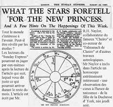Prve kolumne sa horoskopima počele su izlaziti u kolovozu 1930. u Londonskom Sunday Expressu, nakon rođenja princeze Margarete. Izdavač je želio objaviti priču, pa je ponudio Cheiru, tada najpoznatijem astrologu (gledao je u dlan Marku Twainu, Groveru Clevelandu i Winstonu Churchillu), da joj izradi horoskop. Cheiro to nije bio u mogućnosti, pa ga je napravio R.H Naylor, njegov pomoćnik. Kolumna je objavljenja pod naslovom "Što zvijezde proriču princezi" (24.8.1930. str.11). U tom horoskopu najavio je da će joj život biti pun događaja i da će se blizu njene sedme godine desiti nešto od velike važnosti za carstvo, što se uistinu poklopilo sa abdikacijom kralja Edvarda VIII u korist njenog oca krajem 1936. Tjedan dana kasnije, pod naslovom "Jeste li rođeni u rujnu?" objavio je prognoze za sve rođendane u rujnu kao i kratku političku prognozu. Jedna od slijedećih prognoza uključivala je predviđanje opasnosti za britanski avion između 8 i 15.10. Kada se avion R101 srušio kraj Pariza 5.10. pri čemu je poginulo 48 putnika, zbog velikog interesa uskoro je počeo izrađivati tjedne prognoze, što je trajalo do kraja 1940. Te prognoze zauzimale su oko šestinu časopisa koji je imao 24 stranice. Naylorove prognoze u početku su bile po datumu rođenja, ne po Sunčavom znaku. Sunčev znak odnosi se na dio godine u kojem Sunce prolazi kroz jednu zonu od 12 od po 30 stupnjeva imenovanu po najbližoj konstelaciji (npr. ovan, bik itd.). Richard Harold Naylor (9.9.1889. London -1952) smatra se prvim astrologom Sunčevih znakova. S vremenom su svi časopisi počeli objavljivati horoskope, pa je tako The People, glavni konkurent Sunday Expressa, 1933. imao tjednu kolumnu "Plan sa planetama" koju je pisao Edward Lyndoe. Uz prve dvije objave stajalo je oprezno upozorenje izdavača:" Ako vjerujete da planete utječu na vašu sudbinu, ovdje astrolog piše o tome. On vam može pomoći, ali ne zaboravite da ste vi gospodar svoje sudbine. Što god da planete kažu vi određujete smjer vašeg života. Ukratko, The People ne vjeruje da planete ili sudbina ili bilo što te vrste može zamijeniti čovjekovu volju da radi na svom spasenju, ali ipak evo što kažu zvijezde. Lyndoeva kolumna je bila podijeljena na tri dijela, političku prognozu, prognozu za rođene svakog dana u tjednu i prognozu za svaki Sunčev znak, opisan datumom, (npr. 21.3.-20.4.) a ne znakom (npr. ovan). U svibnju 1935. počeo je koristiti imena znakova, ali je odustao jer čitatelji nisu bili spremni na takve tehnikalije. Lyndoe je pravi začetnik astrologije Sunčevih znakova. Do 1940. horoskopi su se mogli čitati u većini novina, a prognoze po imenima znakova su već bile prihvaćene i veoma popularne. Uspjeh kolumni nije odmah pretočen na knjige. Do 1950. godišnje se izdavala jedna knjiga o Sunčevim znakovima, uglavnom Naylorova. Danas knjige po Sunčevim znakovima brojčano znatno nadmašuju druge astrološke knjige. 1941. izvršeno je tromjesečno istraživanje javnog mišljenja o vjerovanju u astrologiju u Velikoj Britaniji kojim se utvrdilo da skoro dvije trećine odraslih više-manje redovno čitaju astrološke prognoze, kao što je otprilike i danas. O utjecaju pogrešnih predviđanja kaže: " Stupanj razočaranja ne prati množinu grešaka, uglavnom zato jer ljudi žele vjerovati u dobro i uživati u očekivanju dobroga, čak i kada se to ne desi." Kroz povijest u astrološkim knjigama naglasak je na planetima, a ne na znaku. Nadalje, znakovi sa planetima (od kojih je Sunčev znak samo jedan) su manje važni od znaka u usponu (na Ascendentu). Britanska astrologinja Vivian Robson 1922. objašnjava da znak u usponu (pogrešan naziv-podznak) opisuje natusov pogled na svijet i ponašanje prema van, a Sunčev znak unutarnju stranu karaktera. Za izračunavanje znaka u usponu potrebno je točno vrijeme i mjesto rođenja, a za određivanje Sunčevog znaka je dovoljan datum. Zbog toga je Sunčev znak pogodan za komercijalnu upotrebu. Mnogi astrolozi se protive takvim horoskopima, čija je izrada gonjena zaradom, a uspoređuje ih se sa čitanjem iz dlana, gledanjem samo u mali prst. Istraživanje iz 1967. među 213 njemačkih astrologa je pokazalo da 49% njih želi zabraniti horoskope po znakovima ( Zeitschrift fur Parapsychologie und Grenzgebiete der Psychologie 10, 115-130). https://web.archive.org/web/20070105015345/http://rudolfhsmit.nl/s-hist2.htm https://www.smithsonianmag.com/history/how-are-horoscopes-still-thing-180957701/ https://en-academic.com/dic.nsf/enwiki/2334824 Oznake: R.H.Naylor, astrologija, horoskop |