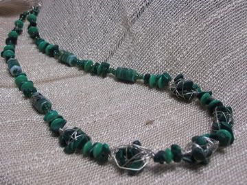 Prva ogrlica je izrađena od ametista i posrebrene žice, a druga je izrađena od malahita, staklenih perli i posrebrene žice.