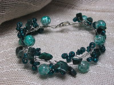 Predstavljam dvije narukvice, čija je baza žica. Rozna je rađena od posrebrene žice i kamenčića roznog kvarca i rodonita. Zelena narukvica rađena je od posrebrene žice, kamenčića malahita i staklenih perlica različitih veličina.