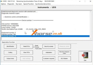 VW >> Diagnostic >> Diagnostic Unit >> Instruments >> Connect >> Identification