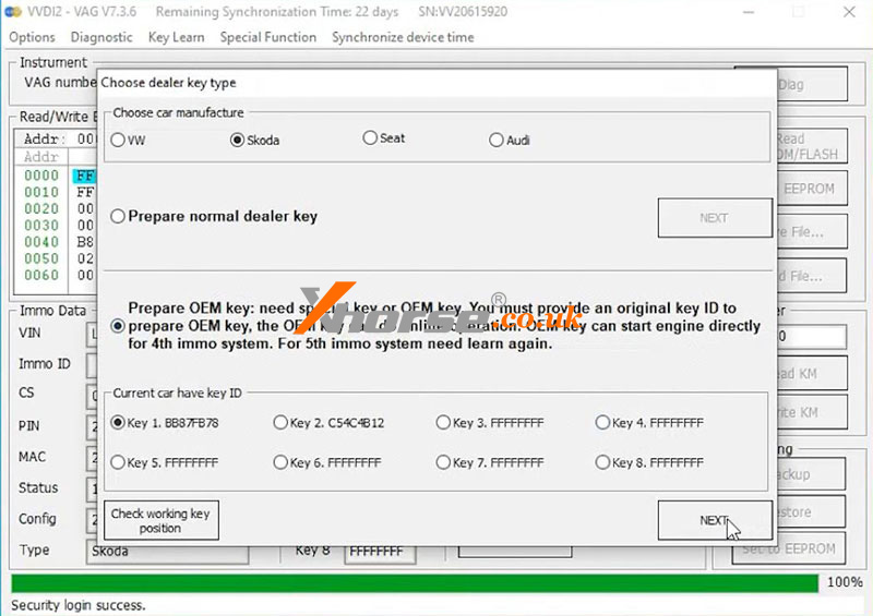 Make dealer key >> Login Method 1 >> NEXT >> Skoda