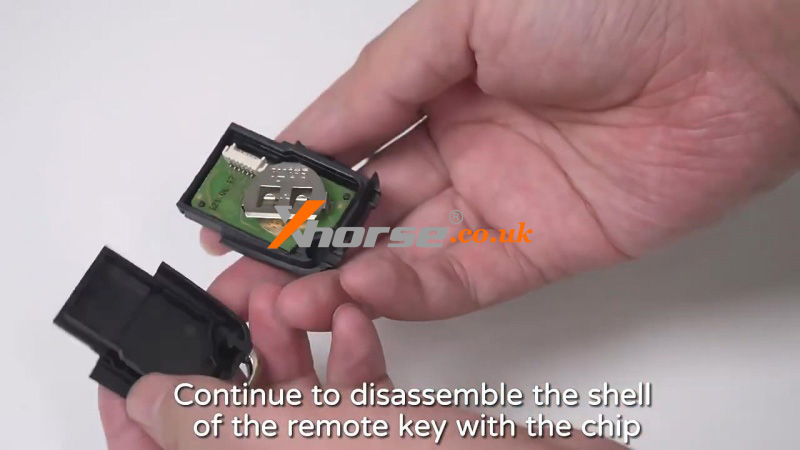 3) Pull both sides of the remote key apart firmly with your hands. Take out the shell of the other half of the remote key. Continue to disassemble the shell of the remote key with the chip.