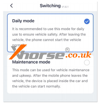 Bluetooth digital smart key supports setting a maintenance mode, which temporarily disables phone detection. Click [Advanced Setting - Switching Mode - Maintenance Mode]. In this mode, the vehicle can unlock/lock doors and start without detecting the phone. This is typically used for scenarios such as car washing. As shown in the picture.