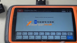 (3) The tool will display the security password. Confirm the process to generate a new key file.