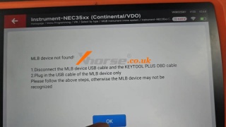 All keys lost: please insert a blank key into ignition switch and connect the vehicle and device.