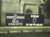 Početak tekme i navijanje je sasvim dobro, na ajmo istok se fakat diže 90% istoka, tak da se od toga vjerojatno govno u guzici sledilo francuzima (njih 20). Navijanje je cijelo poluvrijeme bilo OK i onda u negdje 42. minuti deklarirani četnički saveznici sa zapada zabijaju gol... kako sam kasnije čuo gol je bio fakat pacerski. Na poluvrijeme odlazimo s tim usranim golom. Na poluvremenu uobičajena zaebancija, ali se nemože sjest nigdje. Počinje drugo poluvrijeme i ja mislim 68. Eduardo zabija!!! LUDNICA NA SJEVERU!!! 72. minuta, prilika za francuze, daj ga drži tamo... bravo, tako je too, okej bravo obrana sad samo izbi loptu van, da loptu tu ti je pokraj noge, daj izbi više, pazi, kaj radiš uzet će ti je, daj ga drži... A KURAC!!!!!! Jebeno nevjerojatno jedan od najgorih golova koje sam ja ikada vidio ! S takvom obranom se fakat možemo pokopat. Tekma završava, čista pušiona. Ostajemo još dvajst minuta navijat i igrači izlaze iz svlačionica i dolaze do nas. I onda dolje na atletsku skupit transpove. Nažalost veliki transp Bad Blue Boys je u katastrofalnom stanju i kako sam čuo od nekih deči starijih nakon te tekme odlazi u pičku materinu. Ostavljamo transpove i vidimo navijače auxa (njih četvoricu- jedan lik ima Dinamov grb na leđima). Odlazimo s stadiona i idemo polako, ja, Ćif i još jedan dečko iz Blue Knightsa iz Dugava se lijepo šečemo, pijackamo pivicu i tražimo mjesto za slikat se s transpovima. I tako dolazimo sve do pravoslavne crkve(!!!!!!!) na cvjetno tgru i atmo sliamo same transpove. To je ta sliak koju sam stavio. Onda dolazi neka starija žena i molimo je da nas slikas transpovima. 1. Pokušaj: žena stska krivi gumb na mobu (nema beda ionako nam je rekla da to ona nezna). 2. Pokušaj, žena uspijeva, sliak ispada jebeno i idemo dalje, vadimo mobitele i onda skužimo da je slika samo u prvi čas izgledala dobro a da ju je mobitel zapravo spremio kao jako mutnu tj. neupotrebljivo. Jebiga žena s jednom rukom drži cucka, a u drugoj taj njegov mobitel koji nikad nije koristila. Okej sjedamo na šesticu koja nas fura direkt do doma, ali na glavnom koldvoru zaključujemo da smo žedni i gladni i silazimo. U konzumu kupujemo vodu (jebiga nije nam se dalo još cugat- nemojte steč krivi dojam) i idemo u mekdonalds. Ispred njega vidimo ostatak ekipe s kojom smo se razdvojili nakon izlaska. To je bila ekipa iz The Owlsa i još nešto nama i večim dijelom njima nepoznate ekipe. Najedemo se napijemo i čekamo bus do deset do 12. Ja i Ćif silazimo na krivoj stanici i tako pješačimo dvije umjesto jedne tramvajske stanice. Dolazimo do centra u Zapruđu, jedino ja i Ćif budući da ostali žive drugdje, a Soa smo izgubili na poluvremenu dok je gore otišo vode donjet. Pada dogovor za Kranjču i idemo doma. Mrtav sam umoran, zaspim manje više odma. VIDIMO SE NA TRGAČU U NEDJELJU U POLA TRI!!!