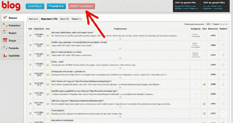 Molimo vas da pravovremeno preuzmete svoj sadržaj. Preuzimanje možete izvršiti u blog editoru na način da odaberete opciju ''Preuzmi sve postove'' (crveni gumb na vrhu stranice).