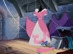Pepeljuga pronalazi haljinu koja je pripadala njezinoj majci i odluči je prepraviti za bal, ali njezina maćeha i sestre ju spriječavaju dodajući joj dodatne poslove. Pepeljugini životinski prijatelji vidjeli su da joj mačeha i sestre namjerno na daju vremena da prepravi haljinu pa su to oni učinili za nju, dovršavajući dizajn s ogrlicom i vrpcama koje su odbacile Drizela i Anastasia. Mačeha i polusestre spremale su se ući u kočiju sretne zato što Pepeljuga ne ide s njima ali se pojavi u toj prekrsanoj haljini.Kad vide Pepljugu ostanu u šoku kakvu je haljinu imala na sebi ali su vidjele da nosi njihovu ogrlicu i vrpce pa su joj ju poderale i otišle u kočiju koja će ih odvesti na bal. Pepeljuga otrči u vrt u plačući, gdje se njezina bajkovita vilinska-kuma sažali nad njom i pomogne joj. Inzistiranje na tome da Pepeljuga ide na bal, vilinska magija čarobno preobražava bundevu u kočiju, miševe u konje, Pepeljuginog starog konja u bojnika,i psa Bruna u kočijaša. Pepeljuga je mogla krenuti no prije nego je krenula vila ju je upozorila da se mora vratiti kući kad na stu otkuca ponoć je će tada čarolija prestati i sve će biti po starom.