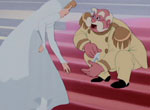 Na balu princ odbacuje svaku djevojku sve dok ne vidi Pepeljugu, koja se slaže s njim plesati, ne znajući tko je on.Njih dvoje se zaljube i izađu na šetnju zajedno u vrt dvorca. Dok se žele poljubiti, Pepeljuga čuje da sat počinje otkucavati ponoć i pobjegne. Kad napušta dvorac, pada jedna njezina staklena cipelica i nije je imala vremena pokupiti. Čuvari palače slijede Pepeljugu no ona uspjeva pobjeći.Čarolija se poništila i sve se vratilo na stro pa se Pepeljuga, njezini kućni ljubimci i miševi sakriju u šumovitom području dok čuvari prolaze.