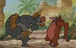 Nakon nekog vremena Mowgli se posvađa s panterom, jer želi ostati u džungli, te se odvoje svaki na svoju stranu. Mowgli tako lutajući naiđe na zabavnog medvjeda Balooa koji ga posvoji kao svoje mladunče te ga počne učiti tučnjavi i rikanju. Da bi Mowgliju pokazao kako se to radi, Baloo rikne te Bagheera misleći da je Mowgli u nevolji pojuri i shvati da je to Baloo. Baloo i Mowgli počnu hodati džunglom te na kraju završe u rijeci gdje majmuni otmu Mowglija, a Balooa onesposobe.