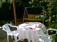 Napravio nam je kavu i donio na njegovu ogromnu terasu, zaštićenu puzajućim cvjetnim lozama od mogućih znatiželjnih pogleda. Sjedili smo zavaljeni u udobne ogromne plastične stolice.