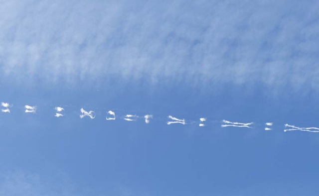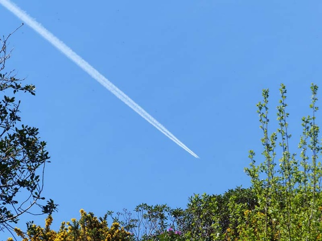 Pratim ja ovih dana i ptice i avione. Nastojim izbjeći stabla na kojima se gnijezde ptice jer posljedice su vrlo smrdljive. No pratim ja i ptice koje ljude prevoze s kontinenta na kontinent. Iznad ovih planina je ruta prema Americi pa su te druge ptice veeelike, a i visoko lete. Dan je bez i jednog oblačka na nebu lete u obadva smjera, a i više iza njih ostaju tragovi a onda me iznenadi jedan koji mi ostavi neku šifru iznad nje preleti drugi no šifra ostade i stajaše dosta dugo, ali ne uspijeh odgonetnuti na kraju sve se stopilo u oblak kroz koji ni sunce nije uspjelo proći danas lete, nebo je plavo bez oblačka, ali nema iznenađenja |
