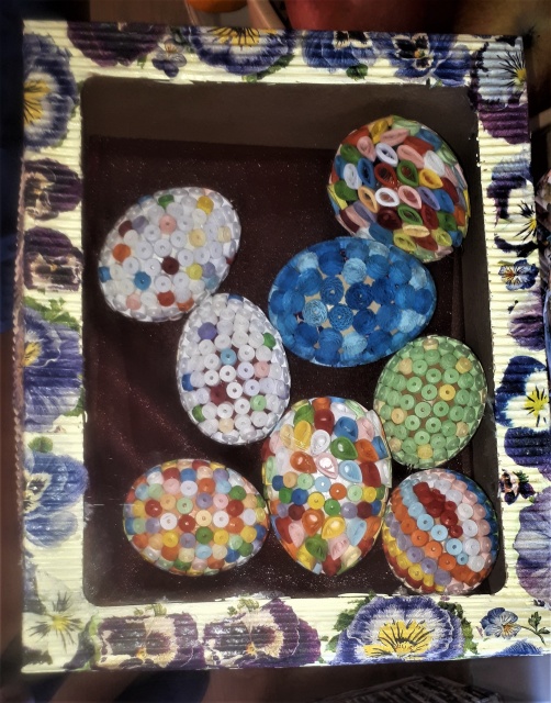 Ja ne osjećam izaliranost kao teret već kao vrijeme za neke nove uradke jer kažu da je najljepši poklon kada ga sami napravimo. Pa eto nekih slika koju treba objesiti na zid, ali nemam kukice dok korona ne prođe kutija za koješta (mojoj kćerki za rođendan) (korištene rolice starih časopisa) kutija i pisanice (ovogodišnje), kutija (tehnika dequopage), pisanice papir širine 3 mm narukvica, drvena podloga, šarene papirne trake širine 2 mm, lakirano podložak za šalice, ( na pluto podlozi rolice od starih časopisa) gornji podložak gotov, a ispod njega je jedna podloga pluta za napraviti) I to nije sve, ali za jedan post dovoljno. Želim zapravo reći kako uvijek možemo iskoristiti vrijeme i reciklirati na razne načine puno toga što nam u kući stvara nered. Uživajte u svakom danu. |