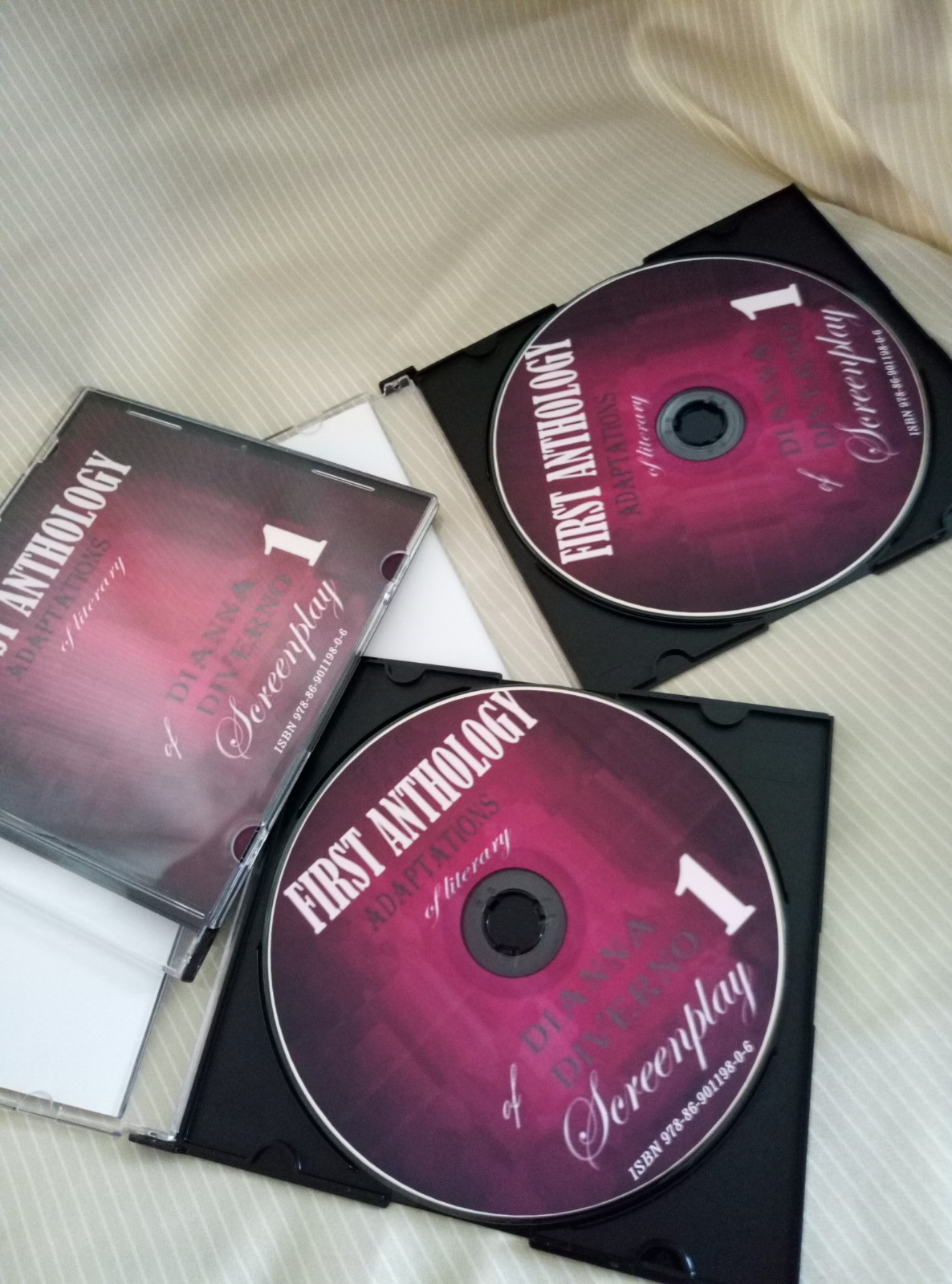 Vidite idejnu verziju CD-diska ''The first anthology'' autorke Dajane Diverno. Elektronska verzija neobičnog dela od 20 različitih scenarija nastalih u periodu od 2004-2019 godine. Verujemo da je jako neobično videti ovo, kao sabrana dela u periodu od 15 godina. Mnogo dela je Dajana radila u rukopisnom formatu, i čini nam se, pored svega, da je ostala verna rukopisnim delima.Pa sačekajmo malo, da vidimo i zvanične CD-disk verzije.