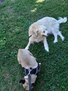 Labradora Spocka smo, kao i obično, uglancali do visoka sjaja a kako je kod nas, srećom, uz čuvanje došao i na grooming, duboko u uhu smo mu našli i jednog grdog krpelja, što je sada uspiješno sanirano! Sljedeći SOS grooming slučaj nam je mala Maza, čiji se 5. nokat gotovo već zabio u tkivo, a što se vlasnici nisu usuđivali sami podrezati zbog Mazine nesuradnje, kao i Mila, koja nam je došla s klasom među mekušima i, potom, otišla doma zdrave i čiste šapice! B Sve su to slučajevi koji zahtijevaju određeni stupanj iskustva i znanja, stoga - bilo da za svog psa trebate čuvanje, uređivanje ili trening - obratite nam se s povjerenjem! U cijenu čuvanja uključen je i standardni pribor i oprema za pse poput zdjelica, vrečica za drekec, lajni, i td. Naime, u slučaju da imate fleksericu, koristimo svoje lajne za šetanje kako bismo izbjegli nepotrebna zapetljavanja u slučaju šetnji više pasa odjednom! U cijenu boravka uključen je i smještaj s krevetićima i foteljicama za pse tako da, izuzev psa samog i hrane te veterinarske knjižice kao potvrde o redovitom cijepljenju, ne trebate ponjeti apsolutno ništa drugo! Za svakog psa na boravku svakodnevno vam šaljemo i pregršt slikica i videa, a davanje terapije, kuhanje ili skrb za pse s posebnim potrebama(dijabetičari, paraplegičari, alergičari) ne naplaćujemo posebno! U slučaju nam baš dođete i zapetljani, bez brige - vraćate se doma raspetljani i, najvažnije od svega, zdravi i sretni! ![]() ![]() Kontakt: ivana@duhek.com 091 7334 456 - Ivana www.groom-room.net Oznake: Zagrebački duhek, pet sitting, salon za pse, grooming, čuvanje pasa, čuvanje kućnih ljubimaca, Zagreb, maksimir, dresura pasa, socijalizacija pasa, vrtić za pse, šišanje pasa |