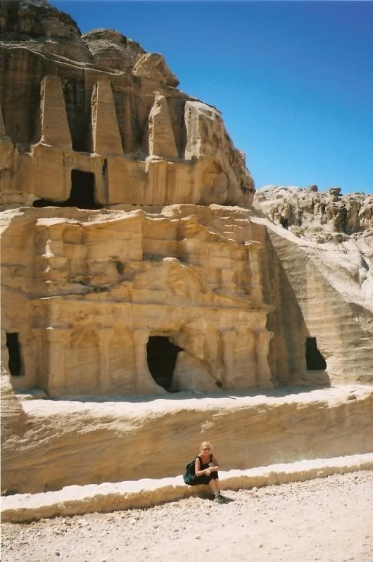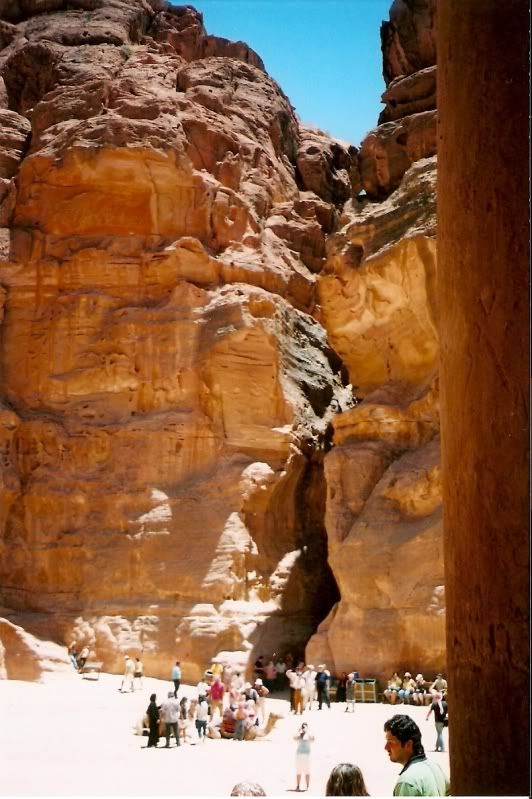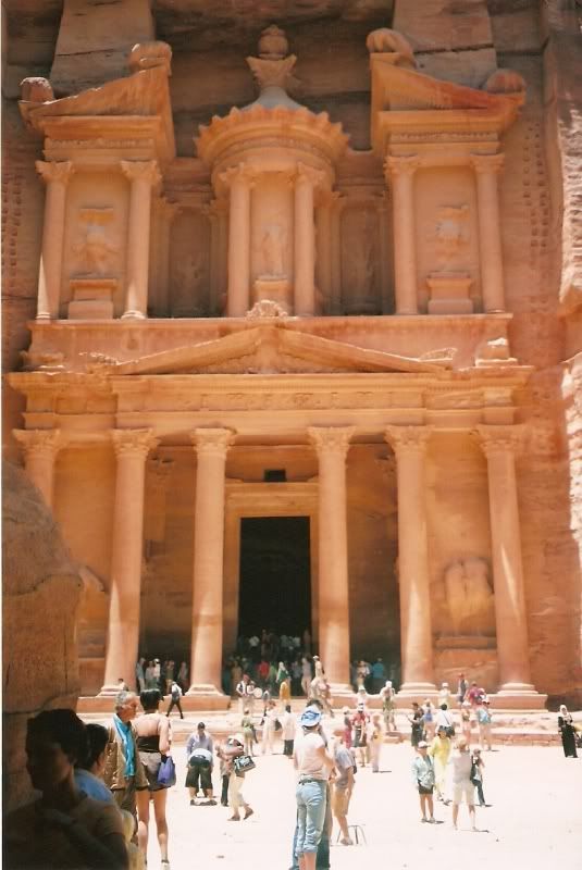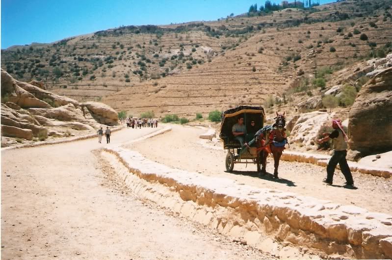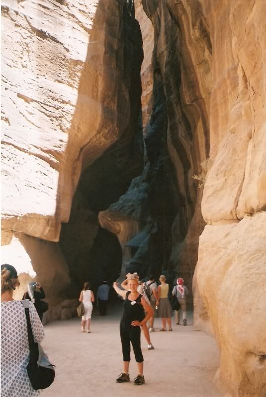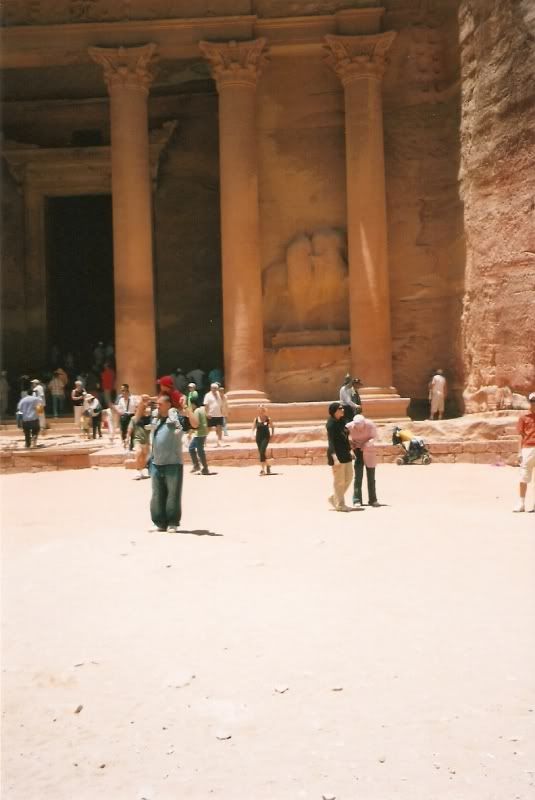 Oko dva su sata ujutro, i nakon gotovo nimalo sna, prenuo me zvuk mobitela koji sam navila kao budilicu, ako uhvatim koji sat sna. Međutim, nisam baš mogla zaspati - što od vrućine, što od iščekivanja puta za Jordan i Petru, jer to mi je bila velika želja posjetiti već duže vrijeme, čak i više nego bilo što u Egiptu! Još sam na Sinaju, u svom hotelu u Sharmu, odakle će me pokupiti bus za aerodrom rano izjutra. Avion nam polijeće tek za par sati, no kako je na aerodrom potrebno doći bar 1,5 - 2 sata prije, moram se ustati ovako rano i krenuti na spremanje. Stpalo, koje sam rasjekla na koraljnom grebenu jučer, još me zeza i peče, pa nešto vremena moram posvetiti i njemu.Zasad je zamotano gazom i više ne krvari, a natikače koje sad imam na nogama ipak se spremam zamijeniti tenisicama - ako mi uspije ugurati zamotanu nogu u njih - jer me čeka dosta pješačenja danas, a u natikačama ili sličnim otvorenim cipelama sam nepopravljivo nespretna, za popizdit, pa se bojim da bi, ako inzistiram na takvoj obući, uskoro završila i sa prijelomom, a ne samo ogrebotinom... ![]() Ipak, nekak mi uspijeva zavit nogu i navuć tenisicu, a i sama posjekotina se sada već čini bolje...U početku mi je malo neugodno za hodat, pecka i sl., pa me malo i brine, no kako mi vrijeme ide, nemam više vremena za improvizacije i moram se dokraja obuć i spremit ruksak! Uskoro izlazim u hotelsko predvorje, i nakon nekoliko minuta stiže i "kolekcionar" nas putničkih duša, koje smo se prodale agenciji koja vodi u Jordan. ********************************************************************************************************************** Tak je!I opet ja sve željne puta do Jordana i Petre upućujem u središte Sharma gdje imate krdo agencija.Koliko god vam se želudac diže od pomisli da idete na izlet sa agencijom, ovo svakome preporučam - jer vas izađe ful jeftinije, a Jordan je sam po sebi, napominjem, dosta skuplji od Egipta. Ovakva tura je zapravo cjelodnevni izlet, na koji krećete rano izjutra, a vraćate se oko 23 - 24 h navečer isti dan; putujete avionom i busom, i obiđete Aqabu i Petru, naravno. U samoj Petri se pritom zadržavate oko pola dana, i na kraju imate vremena i solo plaziti po ruševinama sasvim dovoljno da vam već pozli, vjerujte mi ![]() Ovakav si trip možete uzeti kod lokalnih agencija, dakle, ali i tu se treba malo raspitati jer se cijene razlikuju. Konkretno, mene je na ovaj način taj izlet izašao oko 1100 kn - dosta skupo, da, ali ako si to želite i raspitali ste se o tim opcijama i prije puta u sam Egipat, i uz malo štednje i kalkulacije - zaista se da sredit, i ipak ispada najpovoljnija solucija. Jer, da sam išla solo do Aqabe, pa otuda prema Petri (do koje ima btw. kojih 5 sati jahanja busom samo od Aqabe), ne bi stigla to bez noćenja posložit...A cijene noćenja u Petri i okolici su jako visoke, pa i ako se radi o "budget" travelu i organizaciji. Nema tamo šanse naći nešto u backpack aranžmanu; odnosno, ima - samo je taj backpack isto ful skup, u svakom slučaju - sve bi me izašlo najmanje duplo više nego ovako. Kako to dalje funkcionira? Lik iz agencije uzme vaše podatke, i pobere vas iz hotela u kojem noćite, te vas odpelja na aerodrom, i usmjeri na avion - nakon što vam je dao kartu, naravno - a dalje, nakon leta, preuzima vas i dočekuje jordanska "podružnica", odnosno vodići-surdnici, sa busevima, kojima vas voze do Petre, ispričaju i prepelaju vas onuda, pa vas puste da si sami lutate kanjonima ako vam je gušt, i odpeljaju na ručak u hotel u Petri. Nakon ručka, vraćate se u bus i nastavljate do Aqabe, malo se i tamo prošećete i razgledate, te idete na avion za Sharm, i doma. ********************************************************************************************************************* Ujutro je još mrak, zaista je rano, no ulazeći u bus vidim da je tu već par ljudi iz drugih hotela, pospano kljucaju i žmirkaju prema meni.Dosta je mlađe ekipe, što me veseli, jer znam da ću imati zanimljivije društvo.Na putovanjima se imam običaj uvijek skompati s nekim tko mi paše kao suputnik; pa tako već polako razgledavam i vrebam nove "žrtve" ![]() Budući da me svi pospano pozdravljaju na ulazu, i kartko se upoznajem sa suputnicima, već nalazim kandidate u dvjema mlađim Britankama, odprilike moje dobi - Gemom i Norom. Svi smo još jako pospani i ni ne trudimo se ulaziti u dublju komunikaciju; za to će biti vremena na aerodromu i na putu dalje. Let od Sharma do aerodroma u Jordanu je zaista kratak, traje svega oko sat vremena! Nakon ukrcaja i poljetanja u malom aviončiću, nekom charteru od svega desetak mjesta, uživamo nakratko u dosta jakim turbulencijama, i sad već sasvim razbuđeni, nastojimo konzumirati posluženi nam obrok - za divno čudo; nisam si ni mislila da će nam za tih sat vremena dat i kaj za jest! Još da sam se uspijela oteti dojmu da ćemo se svaki čas stuštiti dole, i da proživljavam zadnje trenutke života, uživala bi u doručku više, no... Istina, prema turbulencijama totalno rezigniran izraz na stjuardesinu licu mi je ponešto pomogao prebroditi krizu, i samljeti keksiće do kraja...Naravno, cjela zgoda smo dokazuje moju tvrdnju da meni nikad nije prekasno ili prerano ili prenapeto za jest, jel'te... ...strašno nešto...![]() Ipak, sletjeli smo, živi i zdravi, i nakon kontrole putovnica i viza - koje btw. trebate imati za Jordan, ali ih lako dobijete na samoj granici, a naplačuju se oko 60 kn, koliko se sjećam, pa nije potrebno prije se s tim natezati posebno - krenuli prema busu, gdje smo se upoznali i s našim jordanskim vodićem, starim Židovom jordanskog podrijetla, Haniem. Lik je stvarno totalno cool, jako puno toga zna i zaista se potrudi da ti sve ispriča i pokaže, i premda izgleda kao da bi zaista trebao u penziju i da je ovakav put za njega ipak preveliki napor, bez problema odradi izlet, sa svim, pa i onim fizički zahtjevnijim djelovima!Zato, Hani Vožnja od granice do