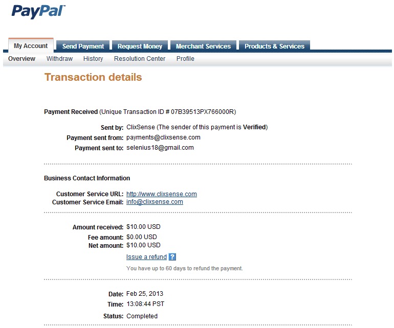 Clixsense isplata 25.2.2013.