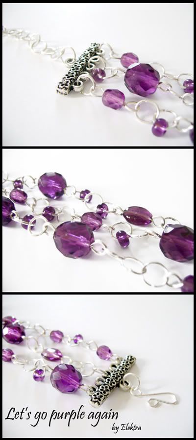 Ovo je nastavak nekadašnje Let's go kolekcije koju možete pogledati ovdje. Nakon zelene narukvice, evo još jedne u ljubičastim tonovima. Izrađena je istim materijalom kao i prethodna narukvica i naravno, unikatna je. ![]() Za razliku od zelene, ovu ne možete kupiti pošto je već prodana u humanitarne svrhe. ![]() ![]() |