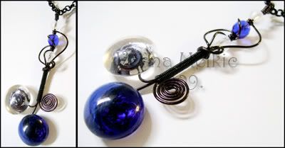 Privjesak je napravljen od crne hobby žice debljine 0,50 & 0,90mm, manjeg bijelog i plavog staklenog kamenčića te čeških staklenih perli + lančića dužine cca 40cm (može se produžiti po potrebi). Veličina privjeska: 9,1 x 3,8 cm Link na veću sliku Cijena: 80,00 kn (+ 10,00 kn pt) ![]() |