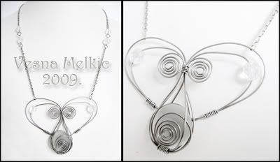 Privjesak je napravljen od inox žice debljine 0,60 & 0,90mm, manjeg mat staklenog kamenčića, čeških staklenih mat perli + lančića dužine cca 30cm (može se produžiti po potrebi). Veličina privjeska: 7,5 x 5,7 cm Link na veću sliku Cijena: 130,00 kn (+ 10,00 kn pt) - * PRODANO * ![]() |