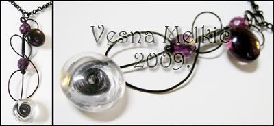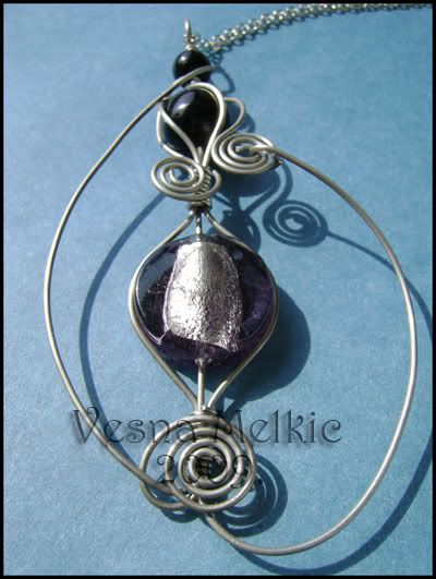 Privjesak je napravljen od crne hobby žice debljine 0,50 & 0,90mm, manjeg bijelog i ljubičastog staklenog kamenčića te čeških staklenih perli + lančića dužine cca 40cm (može se produžiti po potrebi). Veličina privjeska: 10,3 x 3,4 cm Link na veću sliku Cijena: 80,00 kn (+ 10,00 kn pt) ![]() |