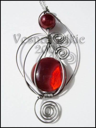 Privjesak je napravljen od inox žice debljine 0,60 & 0,90mm, crvenog staklenog kamenčića te perle + lančića dužine cca 40cm (može se produžiti po potrebi). Veličina privjeska: 7,5 x 3,5 cm Link na veću sliku Cijena: 80,00 kn (+ 10,00 kn pt) - * REZERVIRANO * ![]() |