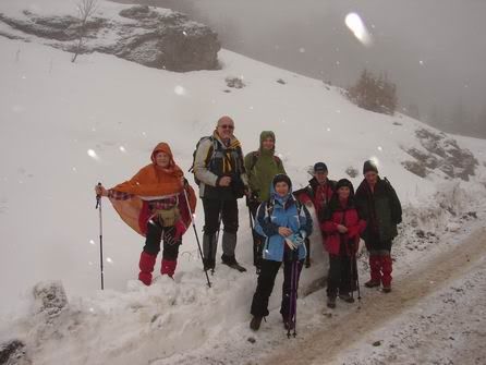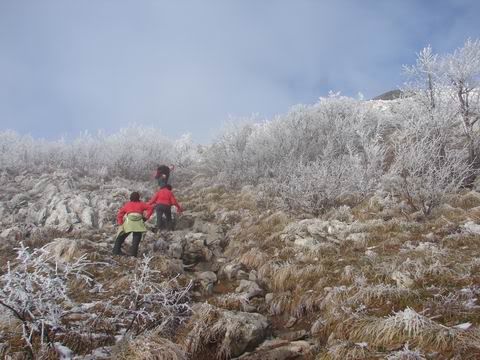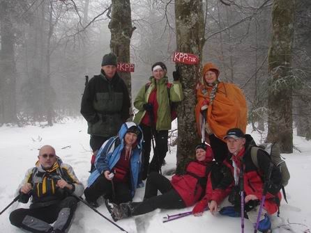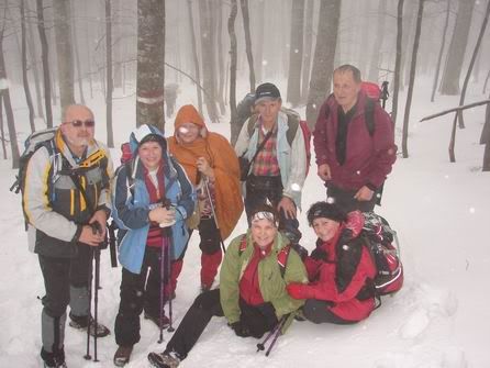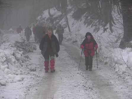 Kako smo išli sve više prema vrhu tako je snijeg bio sve dublji. Ne znam kako je bilo planinaru na čelu kolone, no nama je bilo dobro ići ugaženom stazom. Ali samo korak u stranu dovodio je do propadanja sve do koljena a ponekad i dublje. Kolona se sve više i više razvlačila, no mi smo bili u zlatnoj sredini, bez obzira što je svako malo netko nešto vadio iz ruksaka i dijelio na degustaciju.
