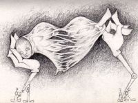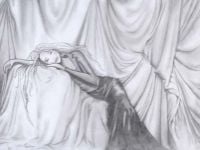 Umor leži joj na kapcima, san još počiva na srcu, ali sat zvoni i razbija spokoj zemlje snova. Njeno mučno buđenje i usporeni pokreti tek su naznake da sad već diše u realnom svijetu.