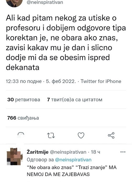 Student se žali svome kolegi: