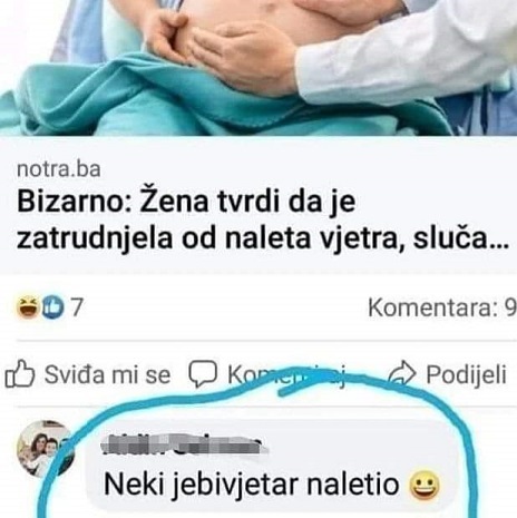 Okrene se on, kad kraj njega stoji trudnica koja ga je udarila trbuhom.