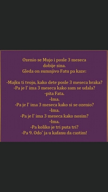 Mujo slegne ramenima i nastavi čitati, kad se trudnica nakašlje: