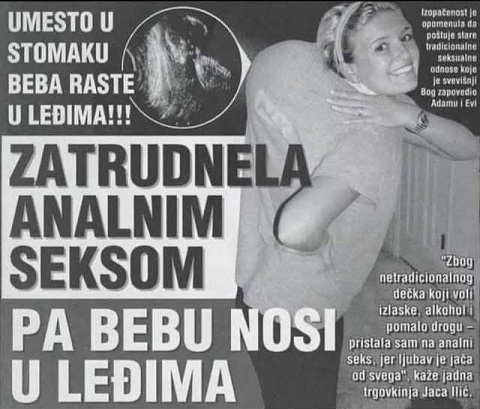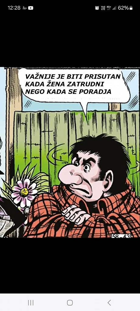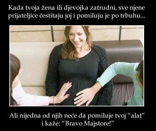 - "Hej draga zeno, da je tebi taj stomak na ledjima