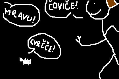 Prvo proliješ crnu boju posvuda, onda uzmeš bijelu olovčicu i nacrtaš čiča glišu, onda dodaš kapu i dobiješ Vanjku, onda nacrtaš nekog drugog čiča glišu ili kukca ili zvijer ili planinu ili kesu ili neko drugo biće ili ništa, onda dodaš balončiće, punom crtom ako crtani lik govori naglas, a oblačičasto ako govori u sebi, onda nešto napišeš u balončić/oblačić, ali obavezno rukom.