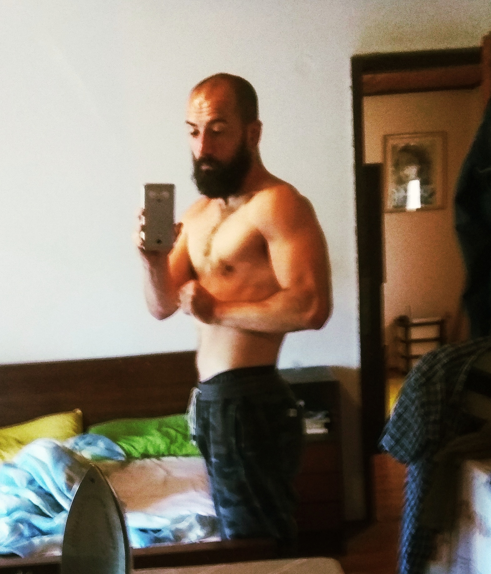 11.08.2018. 17:26h Nešto se pokrenulo u meni. Dogodio se klik. Imam 33 godine. Dijagnosticirana mi je paranoidna šizofrenija. Patim od negativnih simptoma i komorbidno depresivnog poremećaja. Nezaposlen sam. Živim s roditeljima. Može se reći da sam dosegao dno. Probudio sam se u 5 poslijepodne. Dan otpočeo s hladnom kavom, dvije cigarete i sladoled kao doručak. Stvari se moraju mijenjati. Završio sam taj neki fakultet za fitness trenera, a tijelo mi iz dana u dan više propada. Nisam nikakav primjer niti fitnessa niti zdravlja. Ali nešto je drukčije u ovom danu. Shvatio sam da nisam odgovoran za svoju bolest. Otpustio sam sram. Tek kad sam ga otpustio sam se osjetio slobodno da nešto mijenjam. Sjetio sam se da sam borac. Da me sasvim slučajno snašla bolest, nesreća. Vrijeme je da mijenjam ono što mogu. Ali prvo treba naučiti puzati po ovom dnu na kojem sam se našao. Jednoga dana možda dobijem i krila. Nadam se da neću nikada odustati od ovog projekta. Odlučio sam voditi dnevnik borbe s bolesti i mog povratka fitnessu. Trenutno nemam novca za teretanu pa ću raditi vježbe s opterećenjem težine vlastitog tijela, neke vježbe s podesivom bučicom i možda zgibove s dodatnim opterećenjem, jer imam neki pojas iz kućne radinosti. Stavljati ću fotografije napretka. Sve ću se potruditi i opisati. Nekako da otpočnem ovaj korak moram se ohrabriti s još malo nezdravog hedonizma kao oproštaj od letargije, apatije i depresije. Pomalo kao posljednje želje pred smaknuće, jer me čeka težak i trnoviti put discipline i borbe unatoč simptomatici s kojom se hrvam svaki dan. Još sinoć sam bio u potpunosti slomljen i skutren u kutu kafića napisao ovu poemu na smartphoneu: Gradska večer Sazdan sam od umornih očiju Što u noći traže prijatelja Cigaretu pitam da mi pruži predah Tijesno mi stoji gradska večer Tenisice mole za korak prema licu spasitelja Zvijezde prizivaju hrabrost za novim dahom Svijet je mali ove večeri Snaga uvenula je u ovim žilama Pjevam tiho, najtiše Pjesmu o izgubljenoj strasti Želja jeca s ovih usana Milost je pobjegla u nepoznatom smjeru Zubi stišću i ne popuštaju Život se cijedi po barskom stolu Mir me ne nalazi Ali evo sada puštam ''Say yes'' od Elliota Smitha, pušim cigaretu i pomalo zagrijavam kogniciju. Da, nisam spomenuo i da imam ozljeđeno lijevo koljeno. Ozlijedio sam ga ima već dva mjeseca. Ekstremno istegnuće medijalnog kolateralnog ligamenta. To vam je ligament na unutarnjoj strani koljena. Iako je prošlo dosta vremena još uvijek boli i ograničen sam stvaranju sile u lijevoj nozi kao i u opsegu pokreta. Vrijeme je da počnem organizirati dan, život. Dosta je bilo stihijskog nestrukturiranog vježbanja. Ma zapravo u potpunosti stihijskog života koji vodi u propast i produbljuje depresiju. Da napomenem, trenutno sam na injekciji antipsihotika Abilify i pijem antidepresiv Trittico 150mg. Moram priznati da nisam zadovoljan trenutnom farmakoterpaijom. Pa ću i to vjerovatno morati mijenjati u doglednoj budućnosti. Sada bi bilo vrijeme da bez srama pokažem svoje tjelesno stanje putem priloženih fotogafija: 18:04h i još uvijek se osjećam jako letargično i apatično. Napravit ću još jednu kavu i pokušati evocirati nešto elana glazbenim izborom. Zapravo pokušat ću evocirati sjećanja na nekadašnjeg, funkcionalnijeg sebe da mogu te emocije koristiti kao pogonsko gorivo. Znam da previše kave smanjiva razine serotonina, ali meni trenutno stvarno treba taj dopamin koji će mi donijeti šalica kave. Što se tiče glazbe izbor je pao na Curtisa Mayfielda – Move on up. Sjećam se, nekad sam se tako osjećao. Pokušat ću uz pomoć koncentracije emulirati to raspoloženje. Evo simbolično, 18:18, takozvani sinkronicitet, shvatiti ću to kao signal za trening. U 18:48h završio sam svoj prvi trening nakon dugo vremena. Treniram takozvanim V-principom. To je moja umotvorina. To znači da skupine mišića koje doprinose V silueti torza imaju prednost u treningu, jer sam uvijek težio tom atletskom obliku tijela koji mi nije urođen. To znači da prednost prvo dajem ramenoj skupini mišića, pa zatim leđnoj skupini mišića. Ramenoj prvo jer je i po samoj prirodi slabija, no također što su mi leđa genetski jača od ramena, pa prednost dajem skupini koja ima manji genetski potencijal. Tako da kada gledamo u okviru pokreta prednost prvo imaju vertikalni potisci, zatim vertikalna povlačenja i onda horizontalna povlačenja, tek tada slijede horizontalni potisci koji će aktivirati primjerice prsni mišić koji je dominantni pokretač u horizontalnom potisku. Prvo sam radio handstand push ups uza zid, kada sam se iscrpio počeo sam raditi samo negativnu porciju pokreta, koja, usput, jako aktivira centralni živčani sustav i uči motoričke živce motoričkoj vještini snage više nego pozitivna porcija pokreta, također više aktivira brza mišićna vlakna nego samo pozitivna porcija pokreta, a brza mišićna vlakna imaju sama po sebi veći potencijal za hipertrofiju. Moj primarni cilj su snaga i hipertrofija u ovoj fazi, ali pokušat ću i održati mali postotak potkožnog masno tkiva istovremeno. Sljedeće sam radio jack knife push ups, prvo u punom opsegu, pa onda samo negativnu porciju, nakon čega su uslijedili vertikalni potisci s podesivom bučicom do iscrpljenja. Naime, kako sam već spominjao potkožno masno tkivo i održavanje niskog postotaka istog, moji treninzi imaju oblik svojevrsnog kružnog treninga. Radim cijelo tijelo bez značajnih pauza između serija i mišićnih skupina. A mišićne skupine odradim do iscrpljenja od težih vježbi prema lakšima i onda nastavim na sljedeću mišićnu skupinu. Tako kada sam odradio ramenu mišićnu skupinu krenuo sam na zgibove s opterećenjem i smanjivao opterećenje dok nisam došao do običnih zgibova. Zgibove sam radio pronirano jer snaga stečena u takvom položaju će se bolje prenijeti na prednju vagu, gimnastički pokret koji odavno želim savladati. Nakon z
