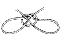 Jeste li već obavili dio s rukama? Cura stenje i izvija se kad ju primite za zapešća? Gura svoje ruke pod vaše? Iznenadite ju! Izvucite prikladan rekvizit iz džepa, ispod jastuka, iz uzglavlja… Recimo, uvijek je prikladno nešto apsolutno neprijeteće. Recimo svila. Šal, marama, pojas kućnog ogrtača. Želite li impresionirati, predlažem malo vježbe. Priložena slika pokazuje kako se vezuje čvor zvan 'lisice'. Zove se tako jer potezanjem ova dva konopca stežete 'lisice' tako da nisu bolne, a čvrste su. Naravno, ništa ne fali ni običnom čvoru, ali skliski materijali kao svila jako se skližu. E, sad, posjedujte li i prikladno uzglavlje kreveta, blago vama J