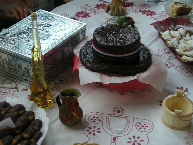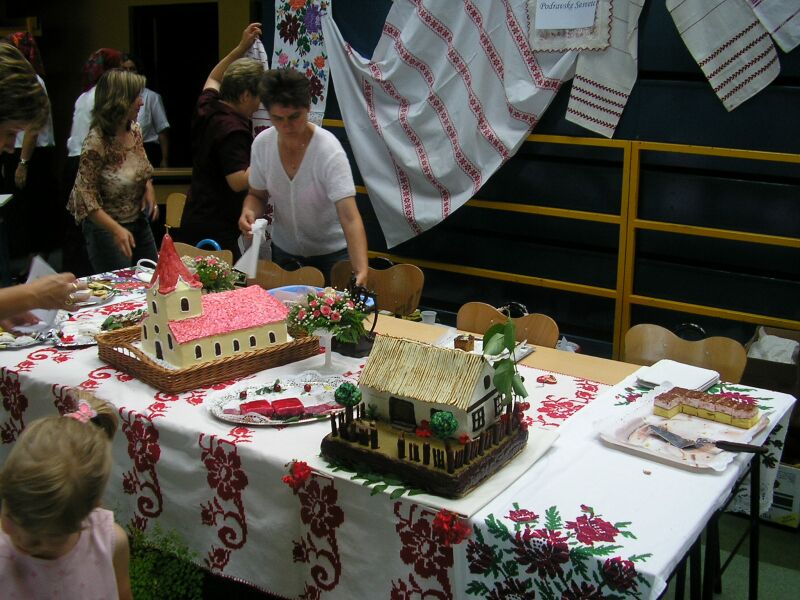 Slatke kuce, izgradnjene slatkim materijalom s puno maste Udruge zena Podravina na izlozbi kolaca Pozdrav zenama do slijedece izlozbe kolaca u djurdjevackoj dvorani , danasnja gosca je bila Barbara Vickovic, samo sto sam ja zaspao zbog jucerasnje borbe Tradicionalna narodna nosnja Cuj, kaj smo mi ovom mladom gosponu zapele za joko kaj nas slika ...[1]