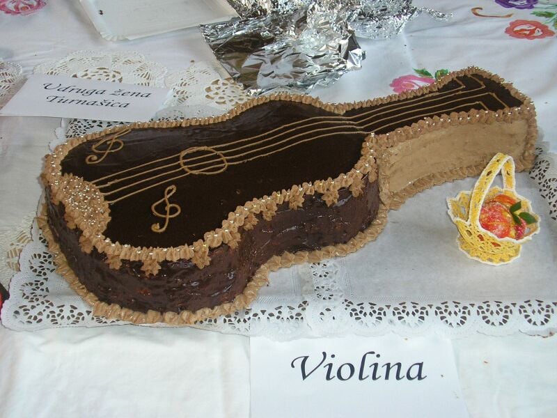 Violina svira slatke note, izlozena, kupljena i pojedena Zarežimo knjigu i bon apetite Kosulja - torta Kreacija Udruge zena Peski Mmmmmmmm....