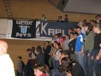 Prvo koliko - toliko dogovoreno pojavljivanje Gademza u dvorani bilo je.... a šta ja znam... tak - tak. Pola ekipe se nije pojavilo iz raznoraznih razloga, tak da se nakon alkoholiziranja u birtiji za odlazak u dvoranu odlučilo nas 15-ak. Tamo je bilo još nešto naše ekipe, ali i pedesetak klinaca, koji navijaju isključivo za RK Karlovac. Nemam pojma, valjda su to neki kadeti ili juniori rukometnog kluba. Uglavnom, navijalo se dosta dobro s obzirom na okolnosti, a klincima smo s djelomičnim uspjehom nametnuli numere iz standardnog Gademz hitovlja.