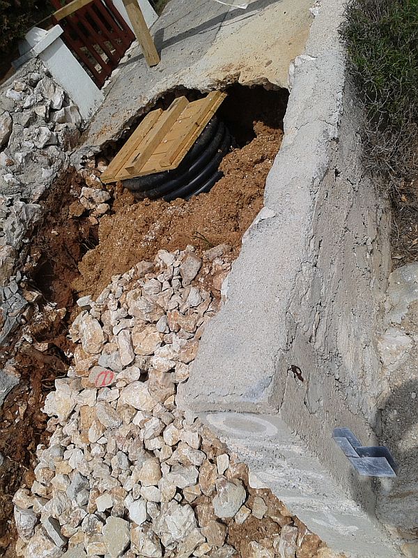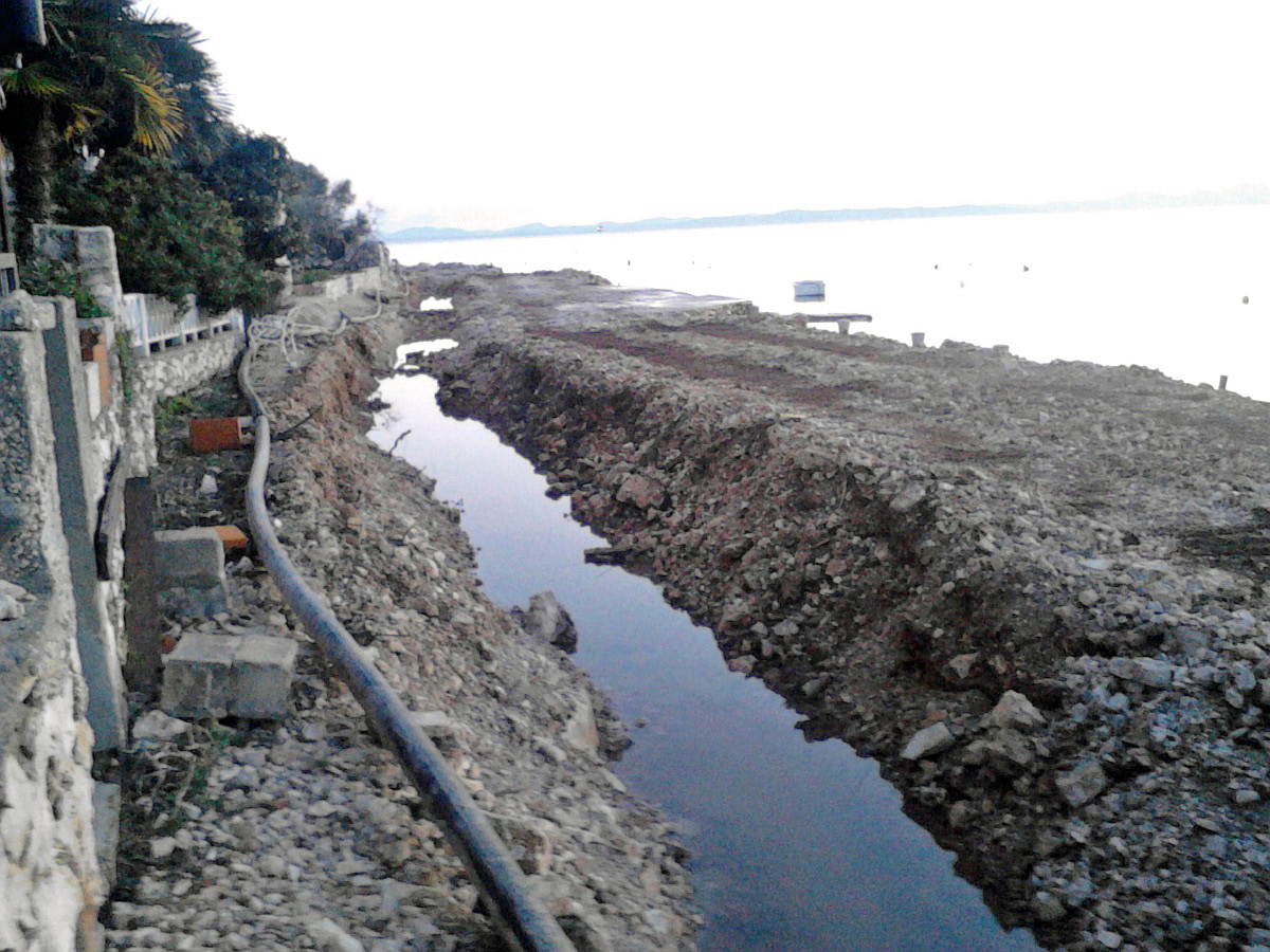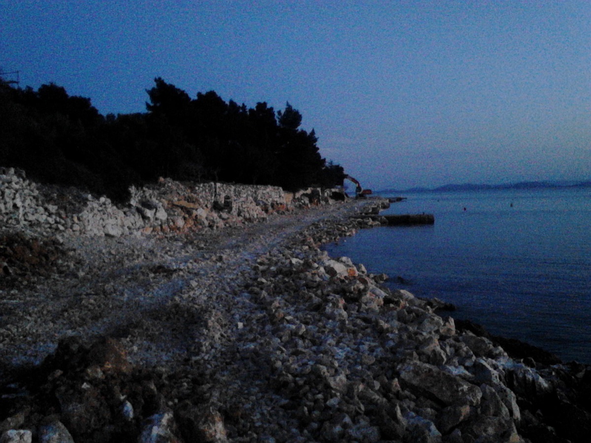 Umjesto probijanja ceste na 2-3m od mora mogli su probiti put kroz makiju koja je na tom dijelu udaljena 10-20 metara od obale. U tom slučaju bi morali kopati par metara dublje kako bi se cijev (široka 30ak cm) postavila na razini koja je potrebna za normalno otjecanje otpadnih voda. Očito je lakše bilo razrovati obalu.